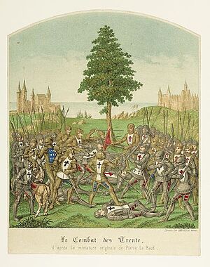 Le Combat des Trente (1351) bien que n’ayant pas eu un impact décisif sur la guerre de Succession de Bretagne marque la mémoire bretonne qui exalte la vaillance des combattants bretons et l’esprit chevaleresque dans un contexte alors anglophobe.