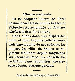Vingt ans plus tard, en mars 1911, la France ajuste à nouveau ses aiguilles : les montres sont retardées de 10 minutes pour s'aligner sur l'heure de Greenwich. Un choix qui fait grincer des dents certains élus du conseil départemental, y voyant déjà une « concession à l'Angleterre ».