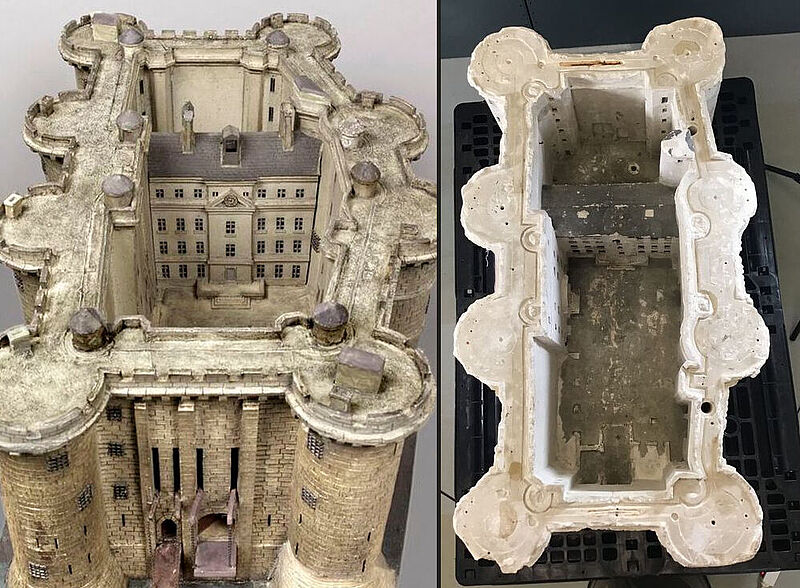 Aujourd’hui, une vingtaine de modèles subsiste dans les départements français sur les 83 qui avaient été créés en 1790(note). La maquette parisienne conservée au musée Carnavalet est la plus complète de toutes. Cette dernière est bien conservée et est encore pourvue de toutes les petites constructions annexes prenant place sur la coursive(note). Elle aide à visualiser tout ce qui est manquant sur les autres modèles.