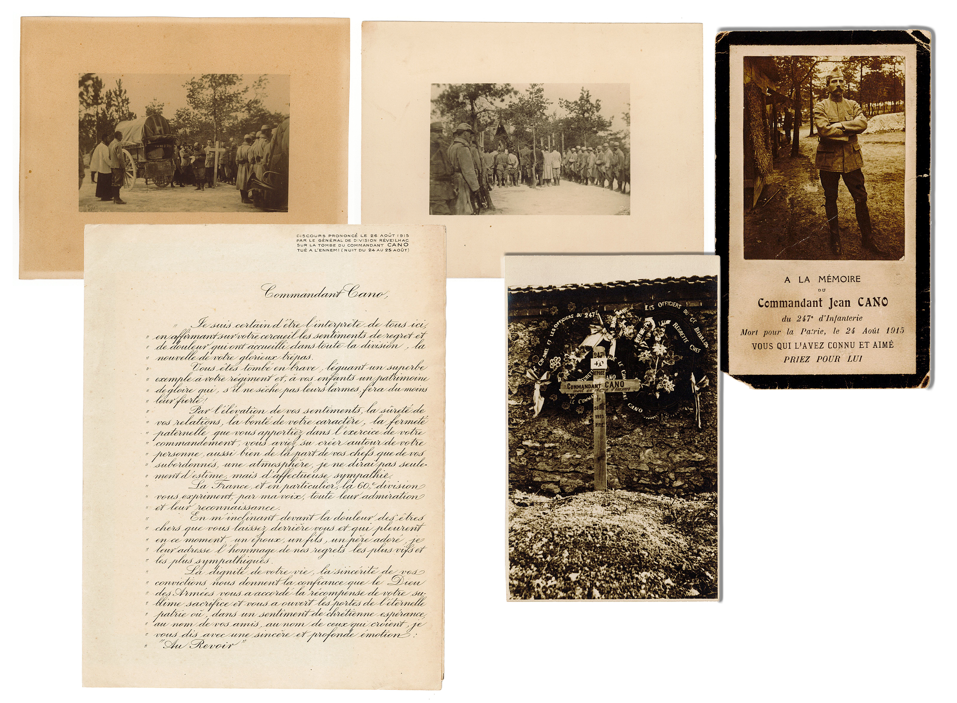 Le fonds contient également un dossier significatif relatif au décès du capitaine Cano (correspondance, photographies de son enterrement, plaque d'identification, etc.).