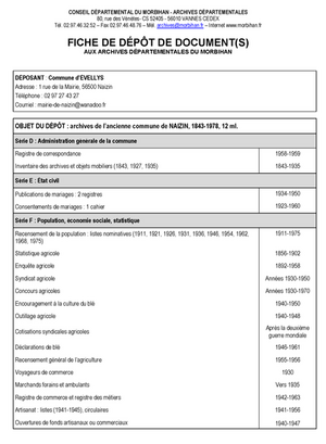 Pour permettre aux lecteurs de s’orienter malgré cette situation, les Archives du Morbihan proposent désormais l’accès à des fiches de dépôt.